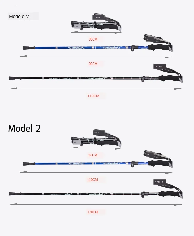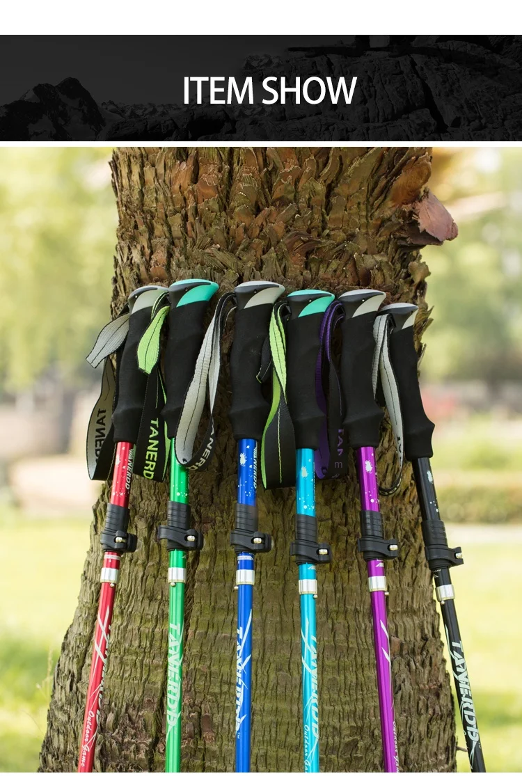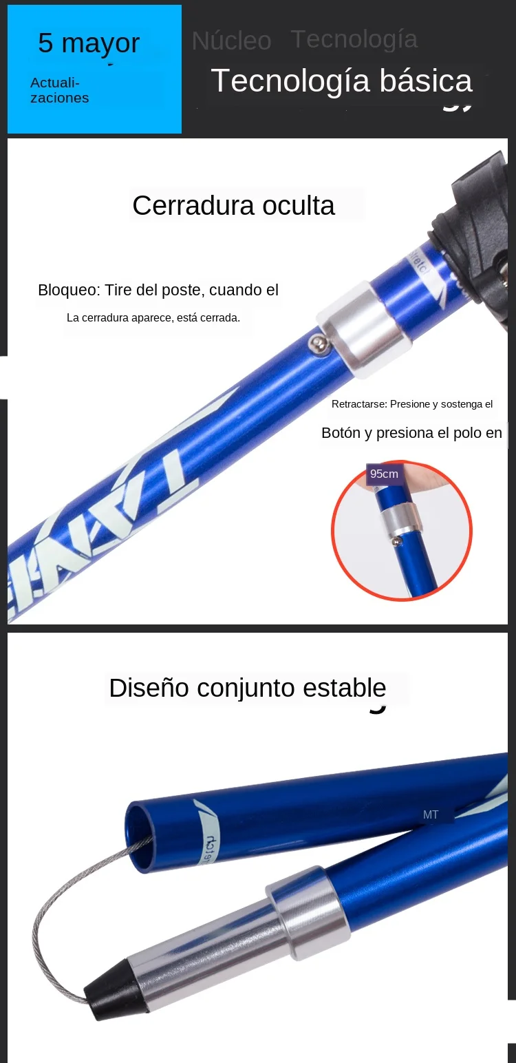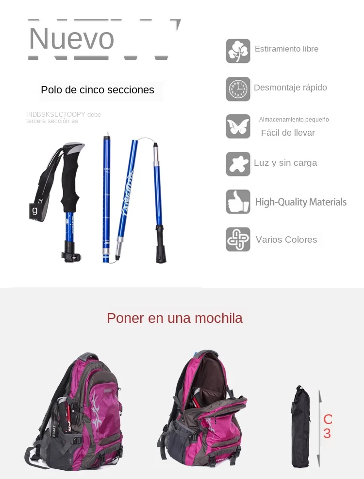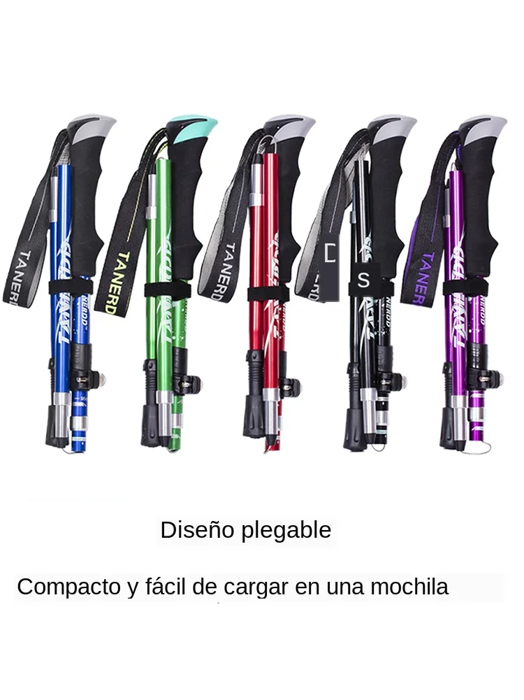 Bastones de senderismo plegables para exteriores, 5 secciones, bastón portátil para caminar y acampar, nórdico, telescópico, fácil de poner en la bolsa