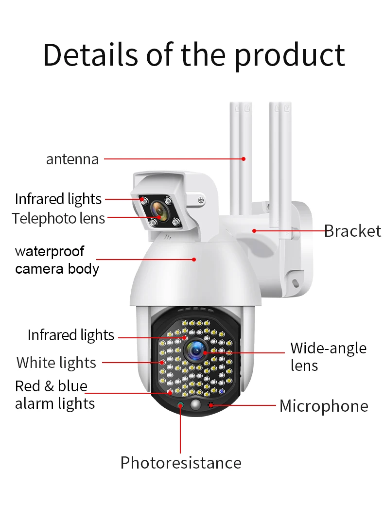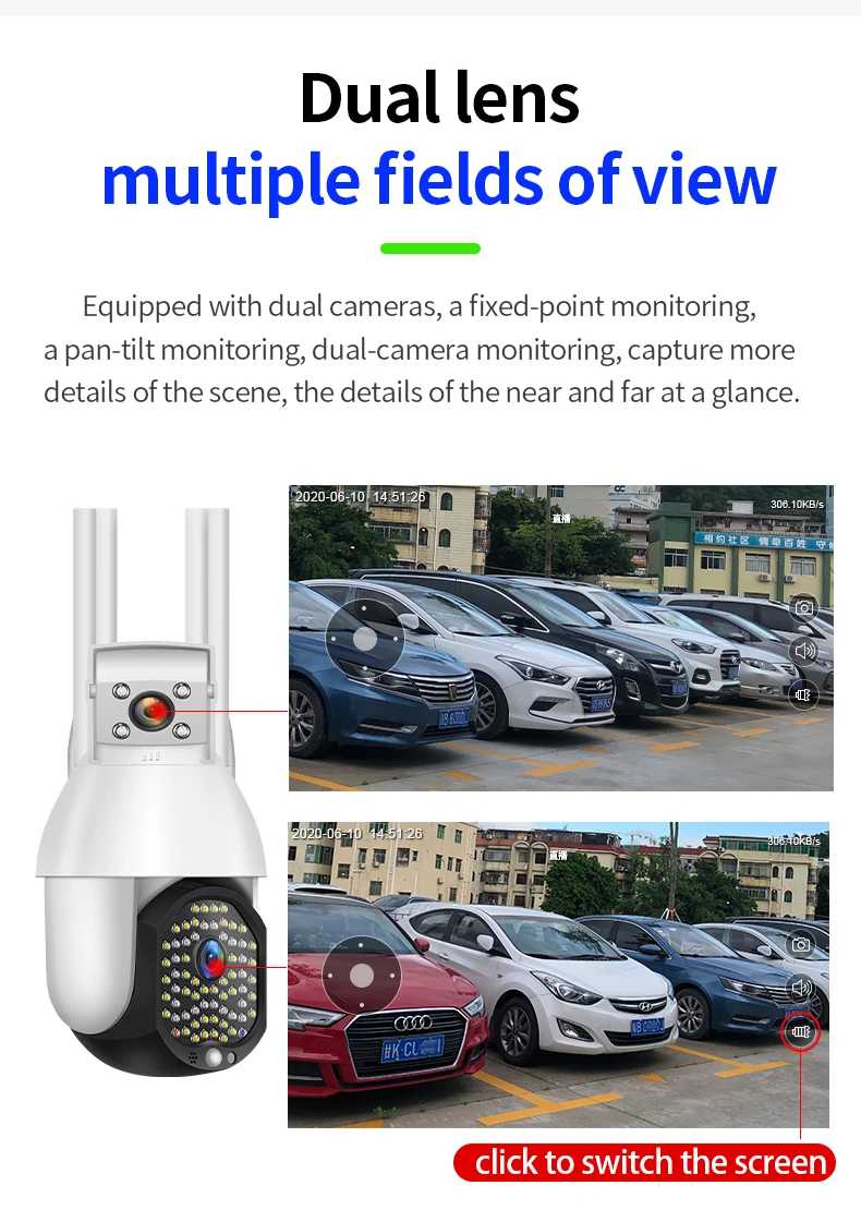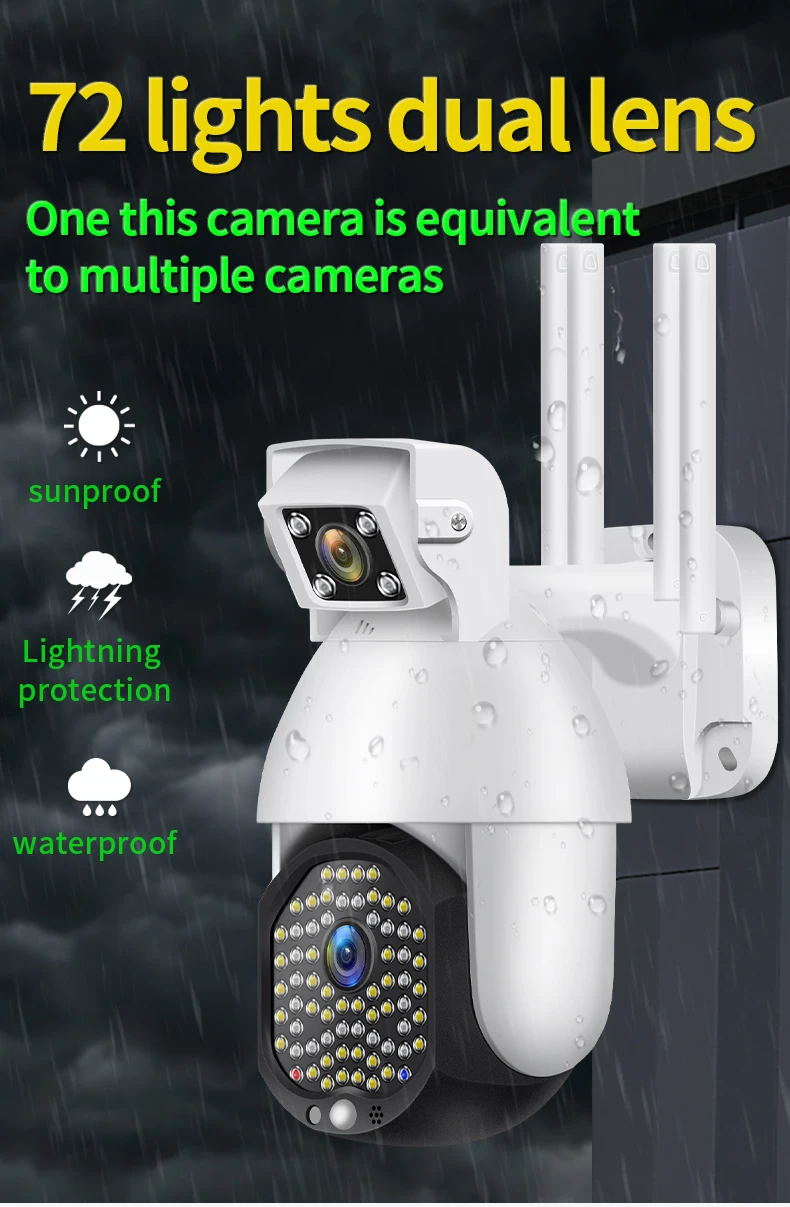 Cámara IP PTZ impermeable para exteriores, lente Dual 2 en 1 de 72 LED, Wifi, seguimiento automático, seguridad CCTV, nueva