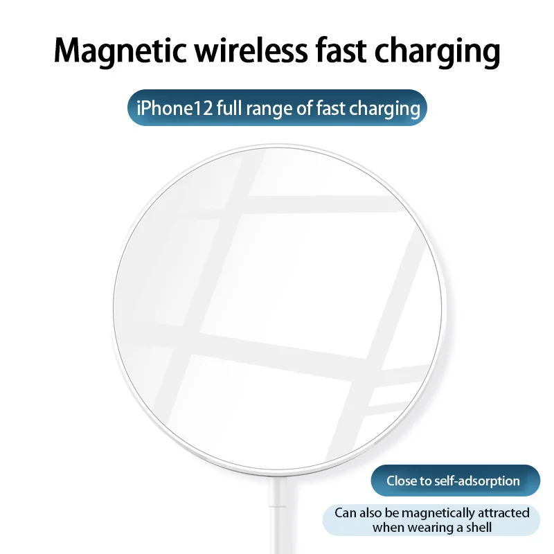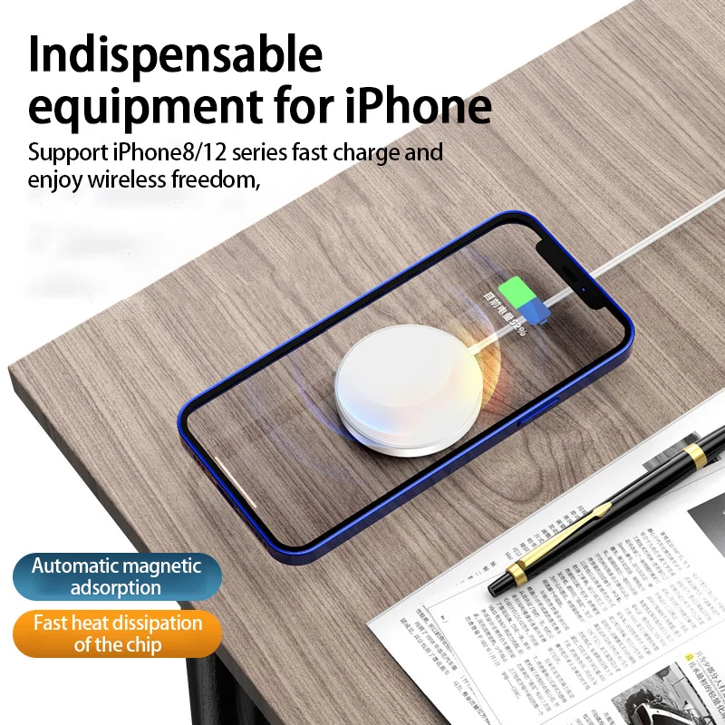 Esta almohadilla de carga magnética admite carga rápida de 15W solo para iPhone 12/12 mini/12 Pro/12 Pro Max.Compatible con USB C