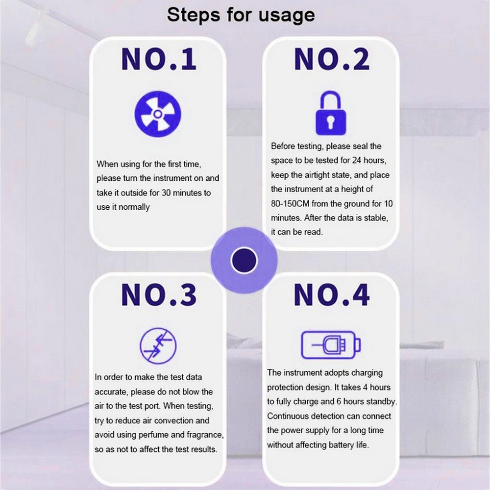 Este producto es un instrumento de medición simple y confiable que combina facilidad de uso y rendimiento, le permite rastrear 4 factores clave de calidad del aire: TVOC, HCHO, CO2, PM2.5.