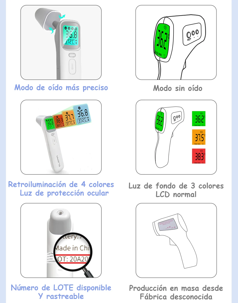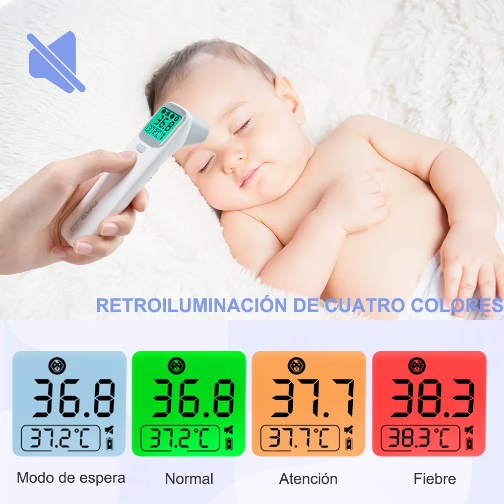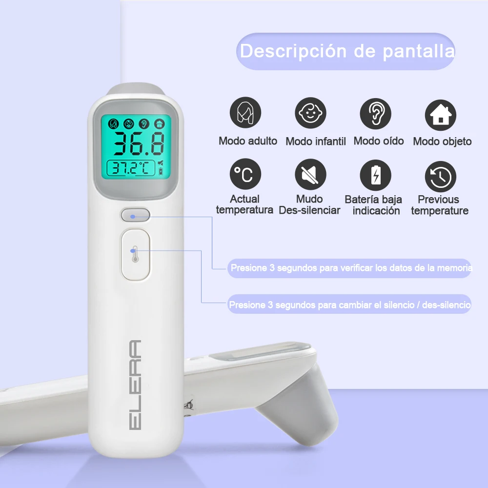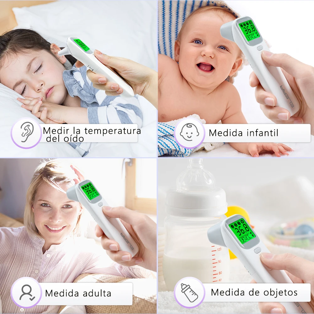 -Multifuncional; puede medir la temperatura del oído, la frente, la habitación, la leche, el agua y los objetos