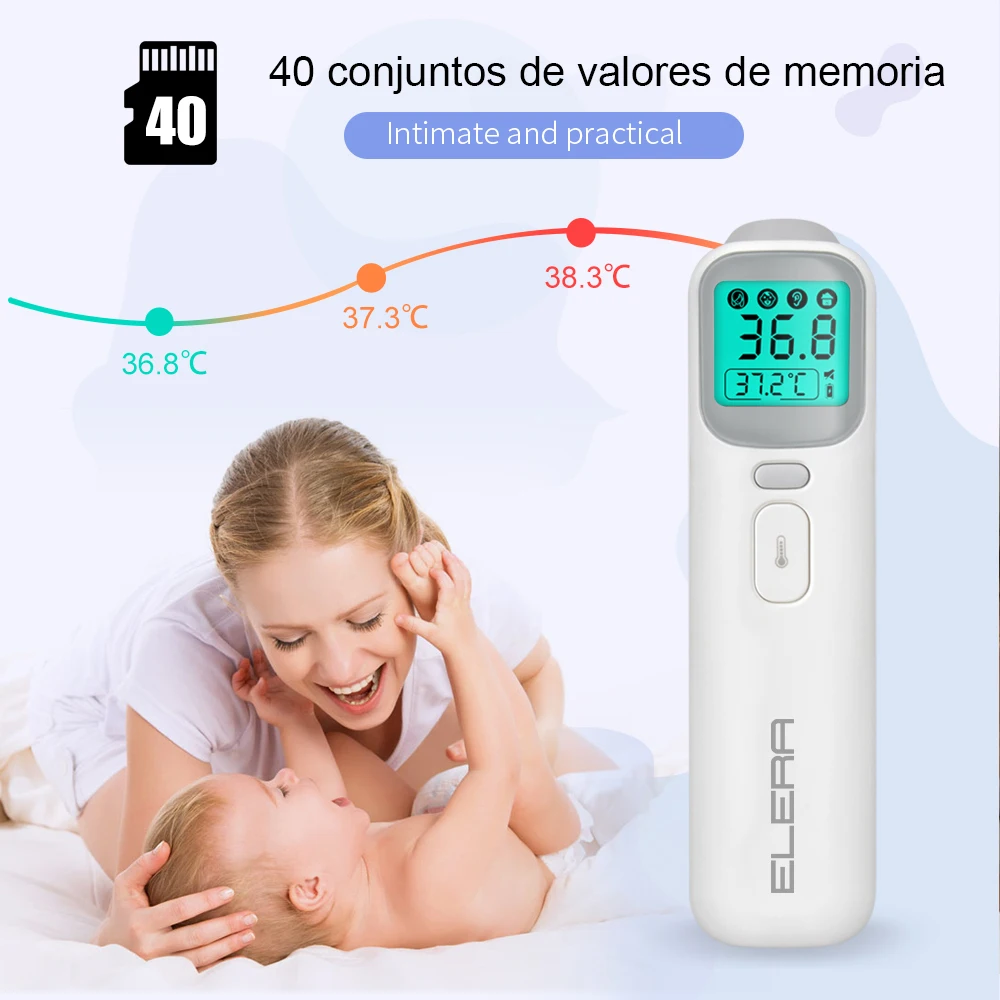 ELERA-termómetro Digital infrarrojo LCD para bebés, medidor de temperatura corporal sin contacto para la frente y la oreja