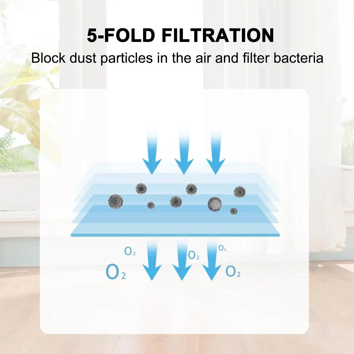 -- Filtración de 5 capas, bloqueando partículas de polvo en el aire y filtrando bacterias.
