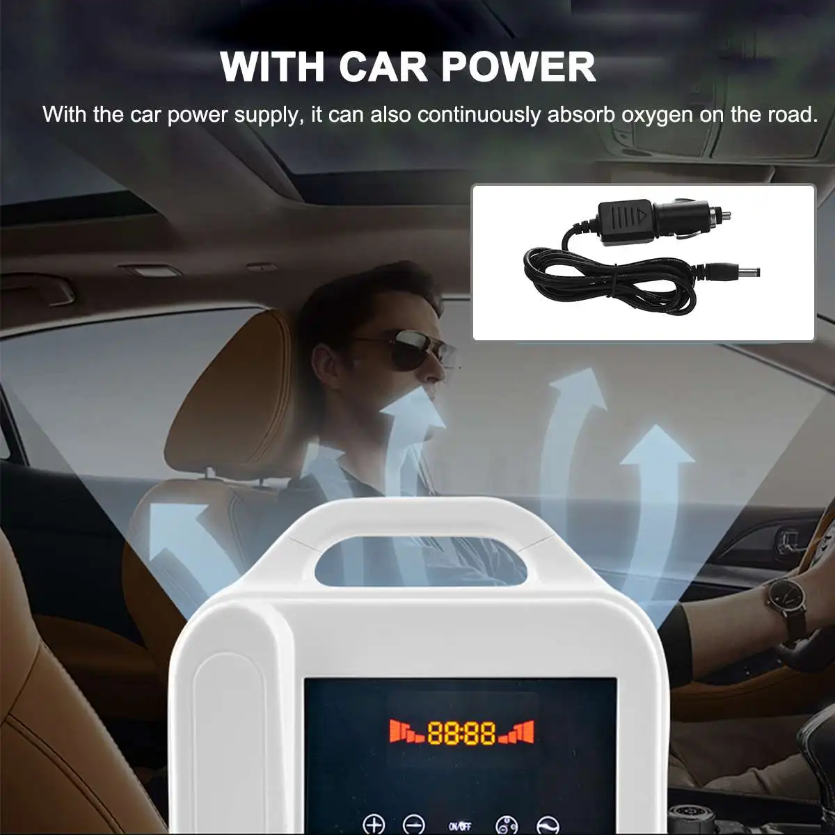 -- Con la fuente de alimentación de coche, también puede absorber oxígeno en la carretera y disfrutar de un suministro de oxígeno ininterrumpida.