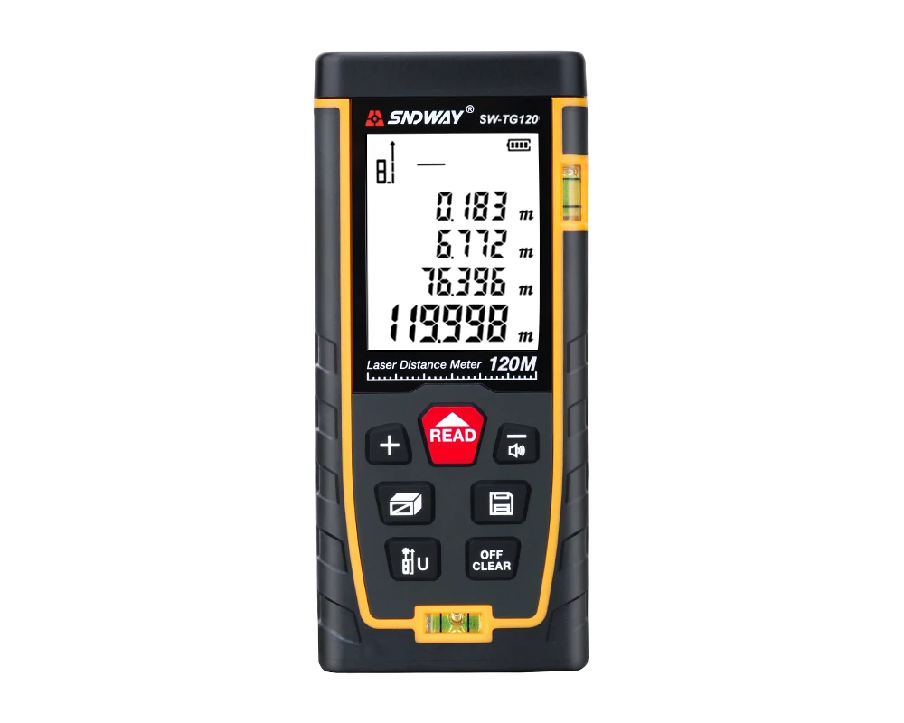 SNDWAY-Medidor de distancia láser, telémetro, regla de cinta métrica 120m